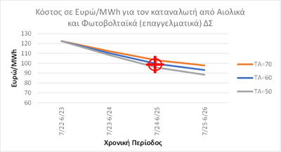 · Το μέσο κόστος για τον καταναλωτή από όλα τα αιολικά και επαγγελματικά φωτοβολταϊκά στο διασυνδεδεμένο σύστημα και δίκτυο (ΔΣ) διαμορφώνεται στα ~9,7 λεπτά/kWh, ενώ προσθέτοντας και τα μικρά υδροηλεκτρικά καθώς και τις υπόλοιπες αλλά ακριβότερες τεχνολογίες της Βιομάζας, Βιοαερίου, ΣΗΘΥΑ και οικιακών Φ/Β, το μέσο κόστος όλων των ΑΠΕ και ΣΗΘΥΑ για τον καταναλωτή προσεγγίζει οριακά τα ~10,7 λεπτά/kWh.